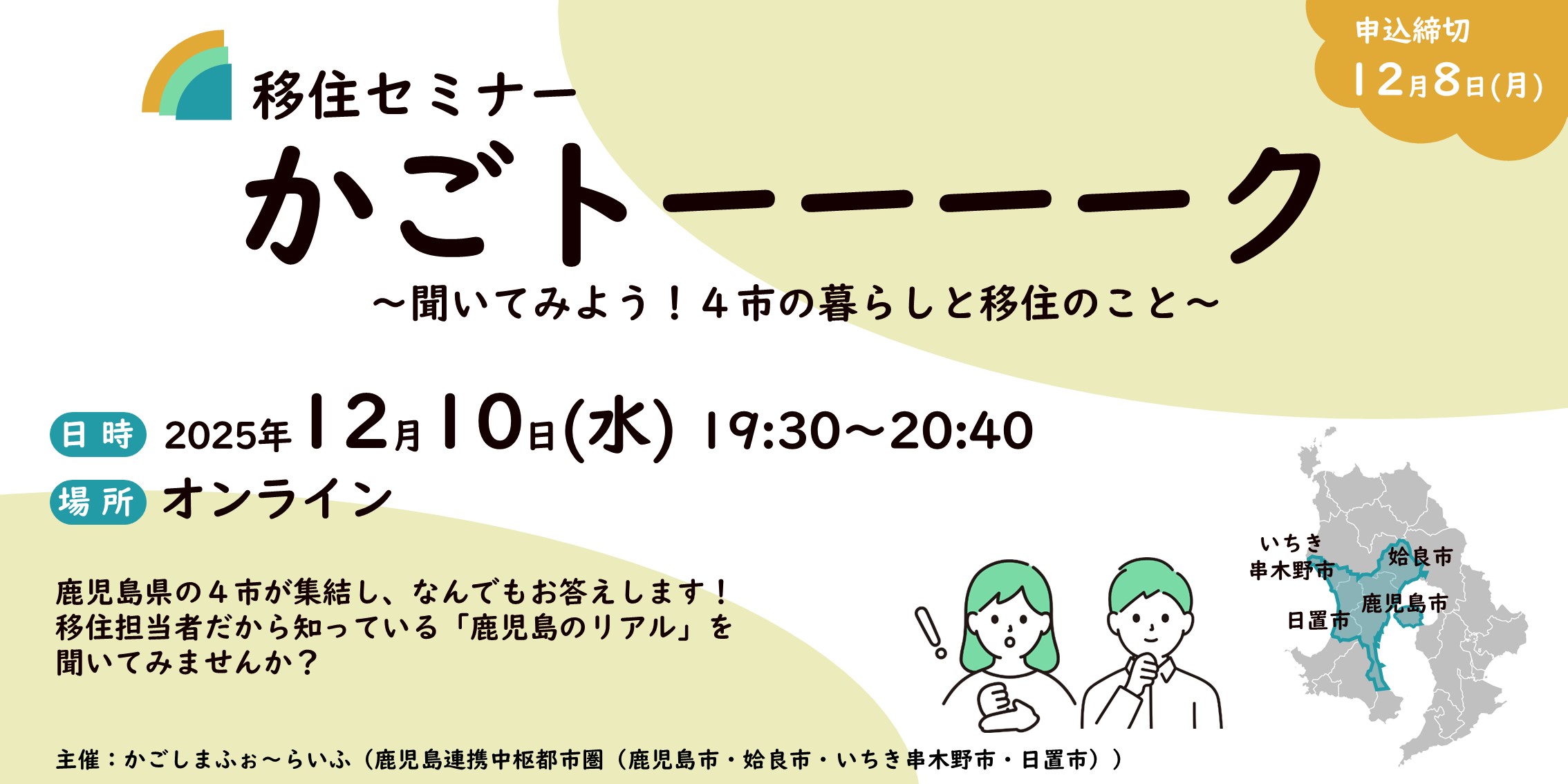 【12/10(水)オンライン開催】かごしまふぉ~らいふ「かごトーーーーク~聞いてみよう!4市の暮らしと移住のこと~」
