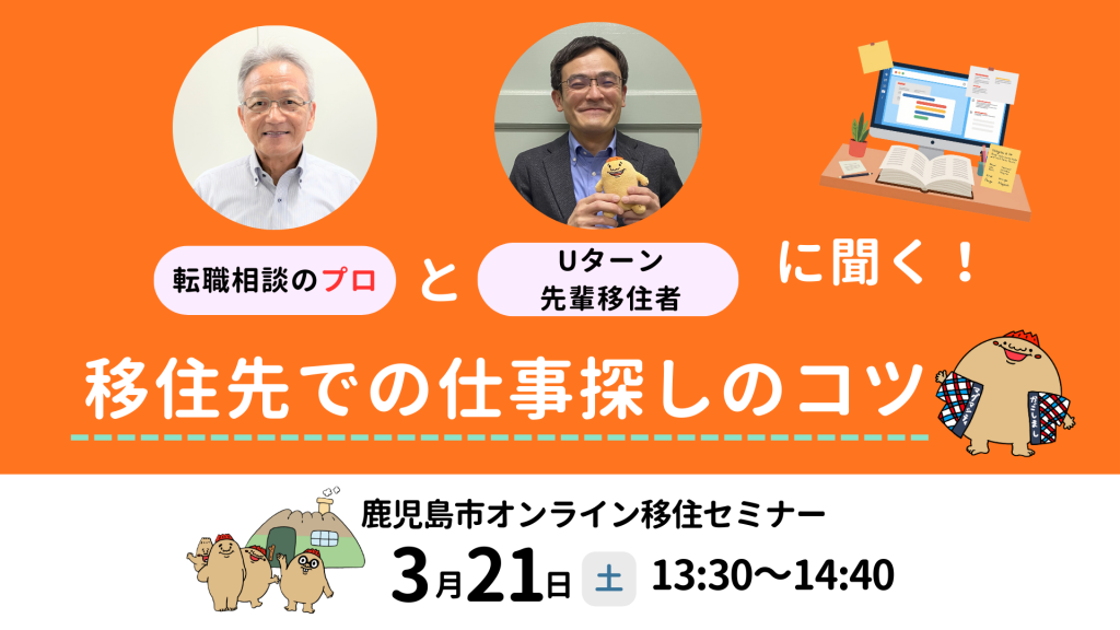 【鹿児島市】3/21(土)鹿児島市オンライン移住セミナー『\就職相談のプロと先輩移住者に聞く!~移住先での仕事探しのコツ~』※移住支援金(関係人口)の要件対象イベント