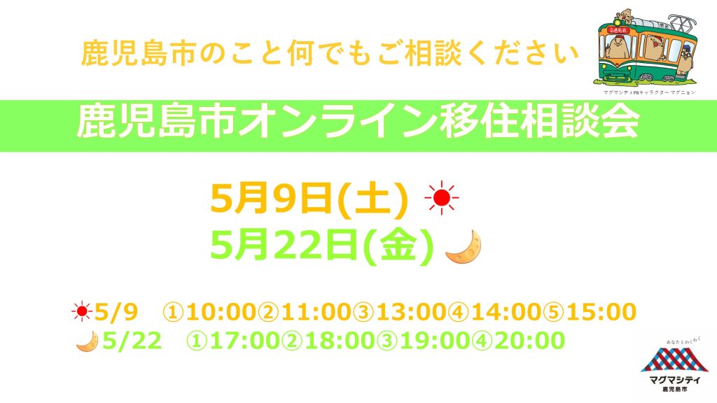 【鹿児島市】オンライン移住相談会5月※移住支援金(関係人口)の要件対象イベント