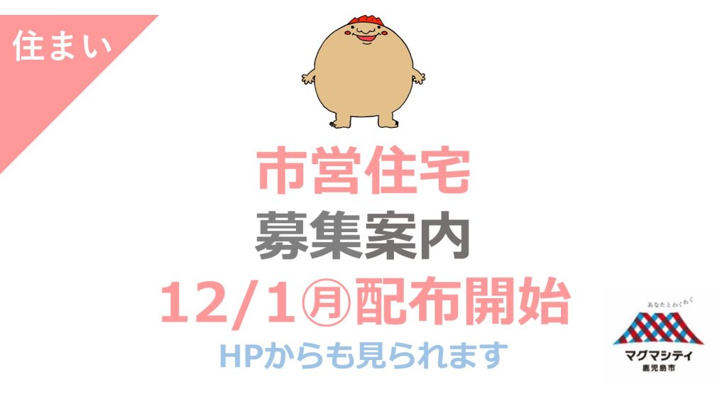 【鹿児島市】\12/1(月)から市営住宅の募集案内及び入居申込書を配布します/