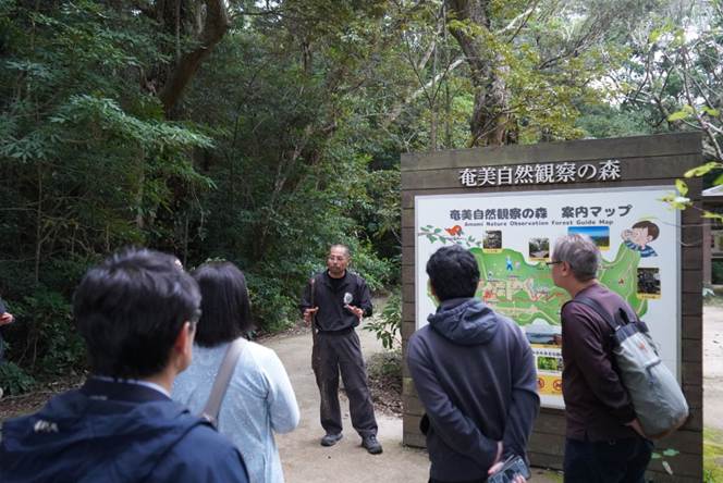 龍郷町の「奄美自然観察の森」では、地元ガイドの案内で奄美の自然を体験。