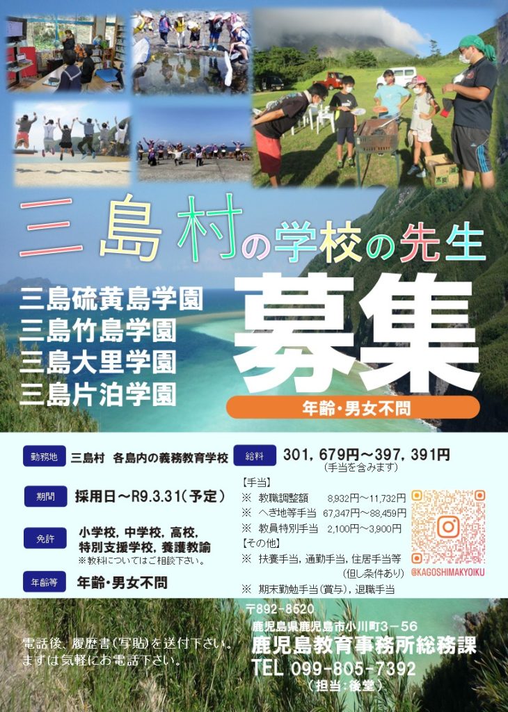 3. 【令和8年度御案内】三島村の学校で働く先生を募集します!